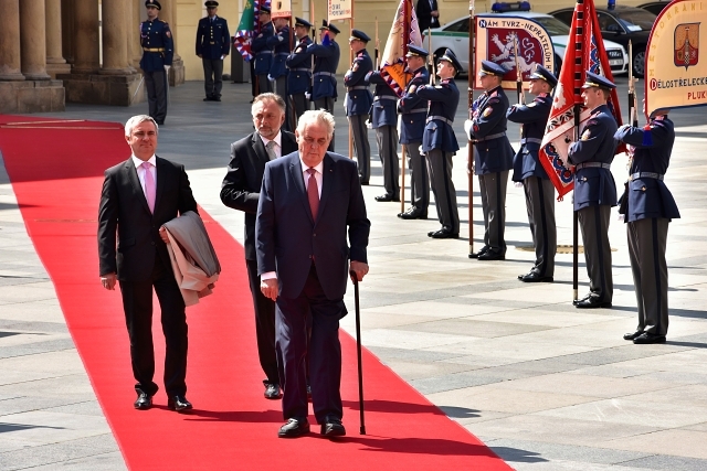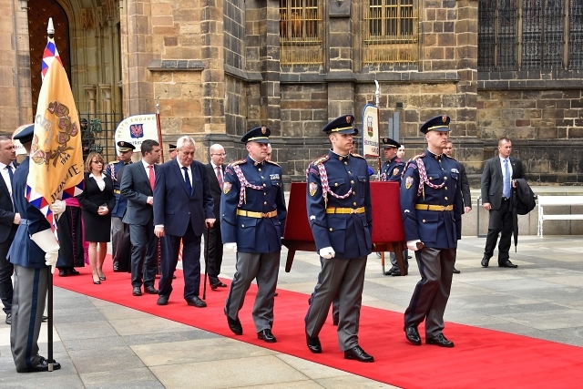 Almost all of the Castle Guards participated in conveying the Jewels from inside the vault, with 50 of the soldiers serving as flag bearers when the Jewels were moved within the compounds of Prague Castle. The ceremony was attended by the Czech President, Milos Zeman, Chairmen of both Chambers of the Czech Parliament, members of the Czech National Trust and armed soldiers.