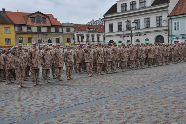More than a hundred soldiers of 5th ACR Task Force ISAF and their commander Colonel Martin Stochl gathered at the Masaryk Square at Brandys nad Labem after a six-month tour in Kabul, Afghanistan.