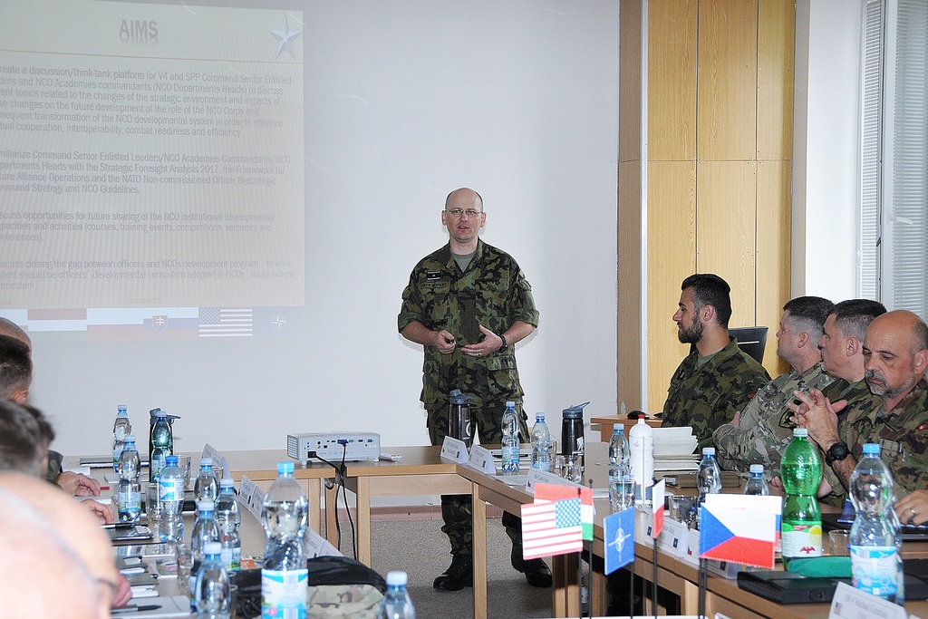 Twenty four top enlisted leaders from the Czech Republic, Slovakia, Hungary, Poland, Texas, Nebraska, NATO School and NATO ACT presented and discussed a wide range of NCOs related topics, such as future development of NCO Corps, mutual cooperation in the area of education and training, challenges connected with the management of enlisted force and sharing of educational and training capacities.