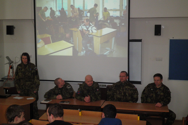 Následující dva dny byly věnovány přednáškám na šesti vybraných středních školách. Přednášející tým byl ve složení dvou vojáků z povolání – příslušníků Krajského vojenského velitelství Liberec a čtyř vojáků v aktivní záloze: velitel roty kapitán Miroslav Peša, velitelé čet rotmistři Jindřich Fric a Pavel Jurkovič, technik roty nadrotmistr Ivan Kortan. Přednášky probíhaly formou moderovaného rozhovoru, kdy vojáci v aktivní záloze reagovali na položené otázky. Měli dostatek prostoru sdělit studentům, proč do aktivní zálohy vstupovali, proč v ní i přes řadu překážek setrvávají, jak probíhá vojenské cvičení, co zahrnuje příprava řidičů vojenské techniky, s jakými zbraněmi cvičí a jakou mají výstroj. U studentů vyvolali úsměvy na tváři, protože atmosféra při přednáškách byla uvolněná, nenásilná a přátelská. Beseda byla okořeněna videem a fotografiemi z výcviku. Řadu studentů ohromila slova o vlastenectví, hrdosti na české občanství, touze pomáhat ostatním lidem, o přípravě na obranu vlasti. Protože toto byly jejich hlavní důvody vstupu do aktivní zálohy. To, a přátelství, které v jednotce panuje. Dobrá parta a možnost spolehnout se na ostatní. Emotivní projev vojáků v aktivní záloze byl zřejmě hlavním důvodem zájmu ze strany studentů. Postupně ztratili ostych a začali se vojáků v aktivní záloze ptát na řadu věcí z oblasti výcviku i jejich osobního života. Největší odměnou za vyčerpávající hodinu nebyl pouze potlesk, ale projevený zájem ze strany studentů, z nichž někteří se hned následující den dostavili na Krajské vojenské velitelství Liberec, aby se stali vojáky v aktivní záloze.