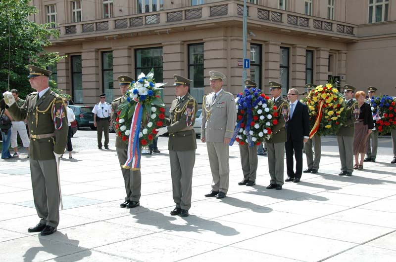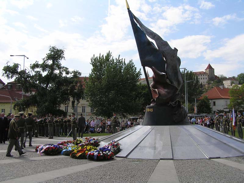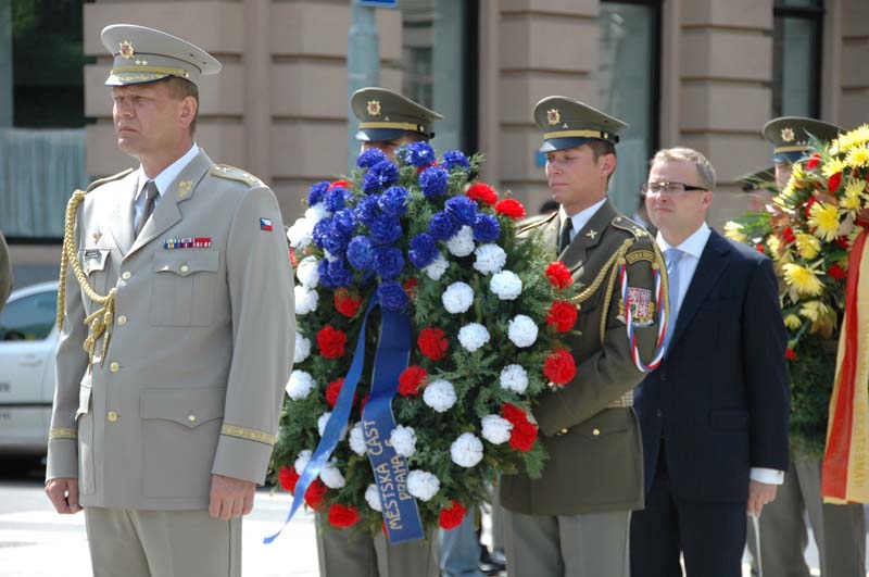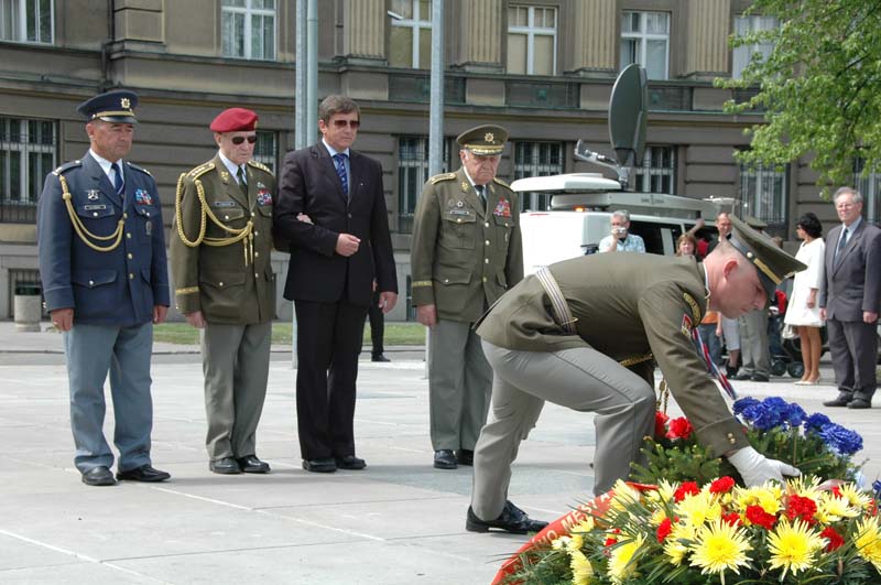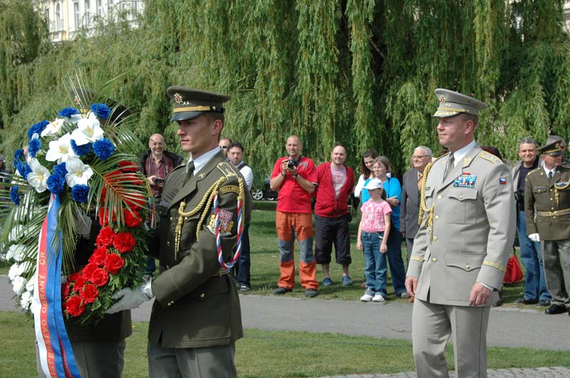 V pravé poledne se před budovou Generálního štábu AČR na pražském Vítězném náměstí uskutečnil pietní akt u příležitosti ukončení 2. světové války. Věnce k Památníku československých zahraničních vojáků položili za resort obrany zástupce náčelníka Generálního štábu – náčelník štábu generálmajor Josef Bečvář, náměstkyně pražského primátora Marie Kousalíková, starosta Prahy 6 Tomáš Chalupa, zástupci Československé obce legionářské a Českého svazu bojovníků za svobodu a další hosté.