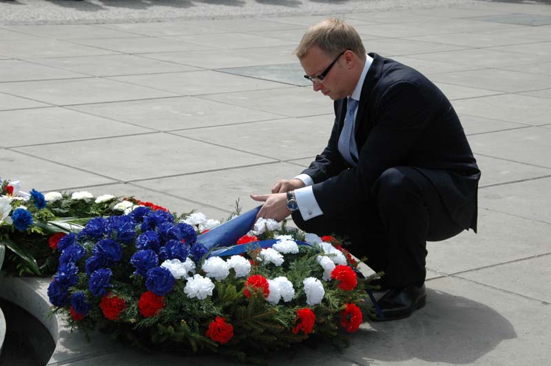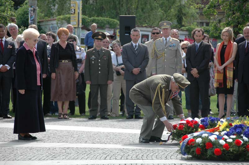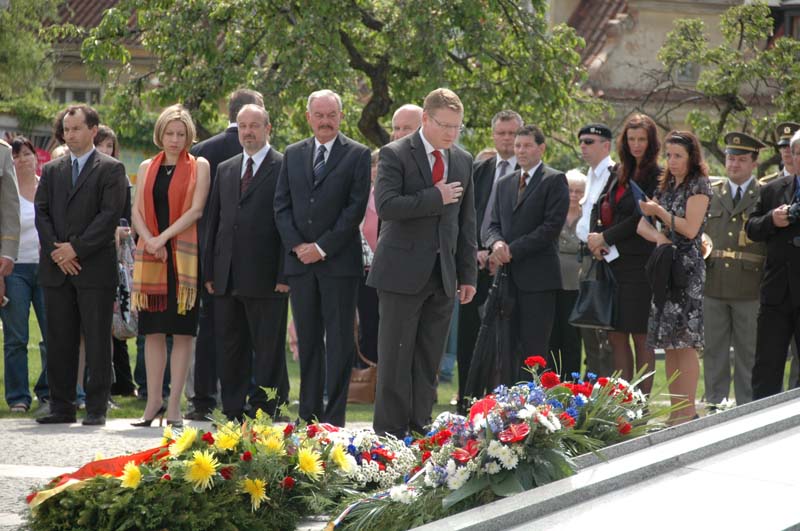 Slavnostní den 64. výročí ukončení druhé světové války byl zakončen pietní vzpomínkou u památníku II. odboje v Praze Na Klárově. U sochy akademického sochaře Vladimíra Preclíka uctili památku obětí první zástupce náčelníka Generálního štábu AČR generálmajor Josef Prokš, předseda Senátu Parlamentu ČR Přemysl Sobotka, poslanci Kateřina Jacques a Petr Bratský, náměstkyně primátora hlavního města Prahy Marie Kousalíková, starosta Prahy 1 Petr Hejma, předsedkyně Českého svazu bojovníků za svobodu Anděla Dvořáková, zástupci Československé obce legionářské a další hosté.