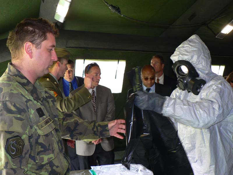 Náčelník operačního odboru podplukovník Miroslav Brázda při úvodním brífinku seznámil hosty s organizační strukturou, možnostmi a vybavením 31. brigády radiační, chemické a biologické ochrany. Zmínil se také o nasazení vojáků v zahraničních misích a vyčlenění jednotek ve prospěch integrovaného záchranného systému.