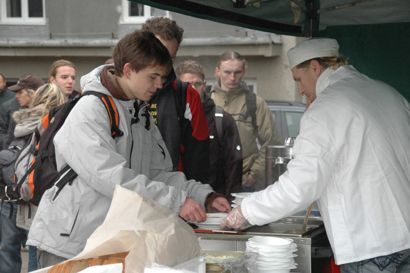 Těm přihlíželi také srbští studenti a vedoucí pracovníci z Vojenské akademie v Bělehradě, kteří se v těchto dnech seznamují s naší školou. Na prezentaci Univerzity obrany nechyběl ani pravý vojenský guláš, který podle dotázaných chutnal skvěle a navíc byl pro ně nečekaným zpestřením. V chladném prosincovém dni přišel k duhu také horký čaj.