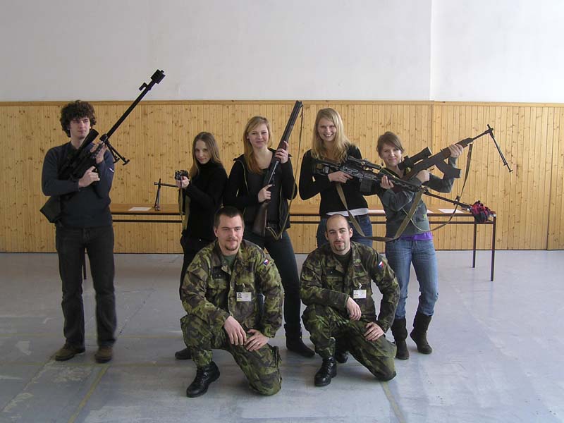 Poté si studenti během statické ukázky prohlédli techniku a materiál chemického vojska používané k radiačnímu a chemickému průzkumu a dekontaminaci. Měli také možnost vyzkoušet si oblékání a činnost v ochranných maskách a protichemických oděvech a manipulovat s ručními zbraněmi, které mají chemici ve výzbroji.