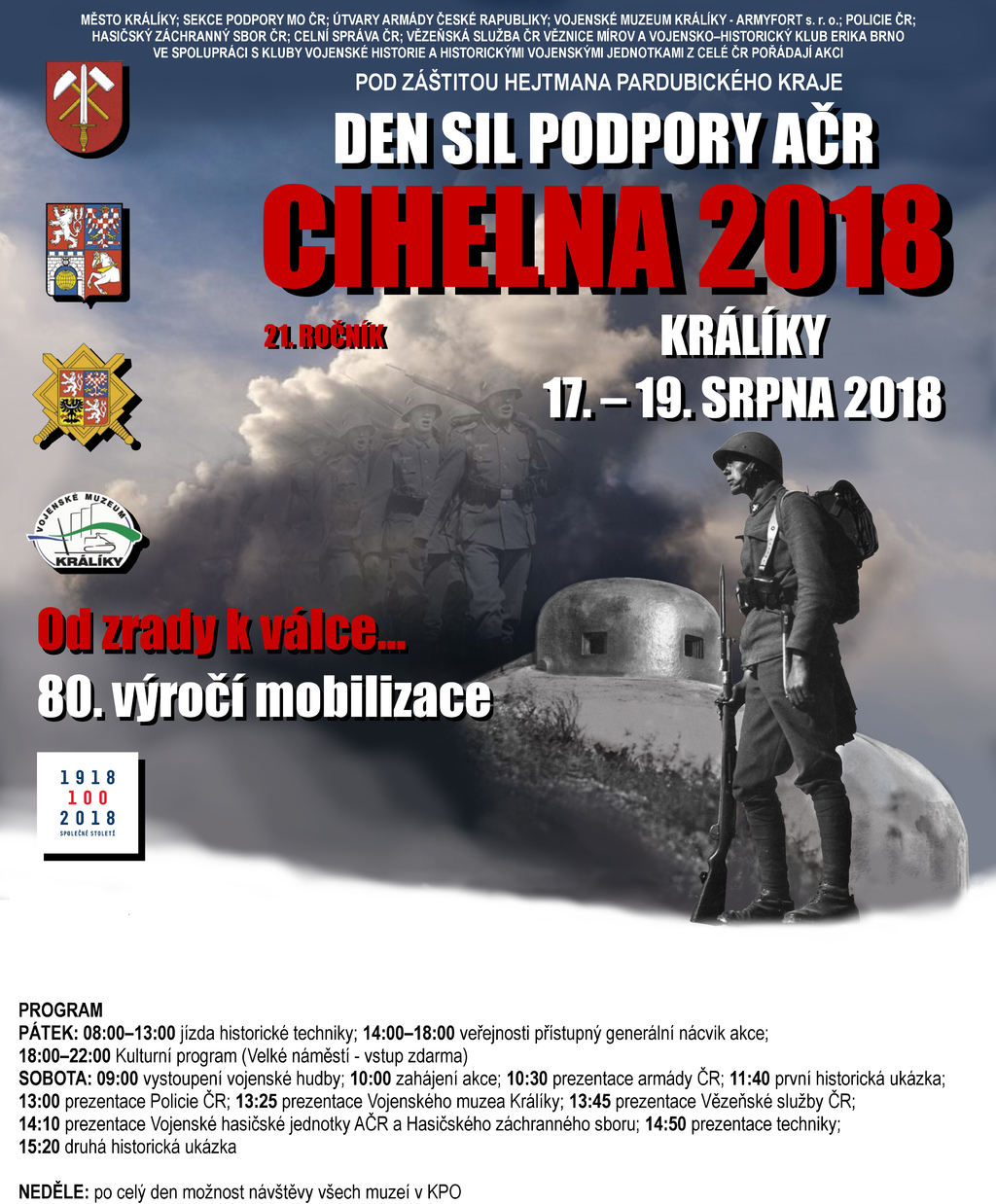 Ve dnech 17. a 18. srpna 2018 se v prostorách Vojenského muzea Králíky a v přilehlém okolí uskuteční již jednadvacátý ročník akce Den sil podpory AČR CIHELNA 2018, která je určená všem příznivcům vojenské historie, techniky a současné výzbroje. Jedná se o společnou akci Armády ČR, Aktivních záloh, Policie ČR, složek IZS, Celní správy ČR, Vězeňské služby ČR, klubů vojenské historie a civilních subjektů.