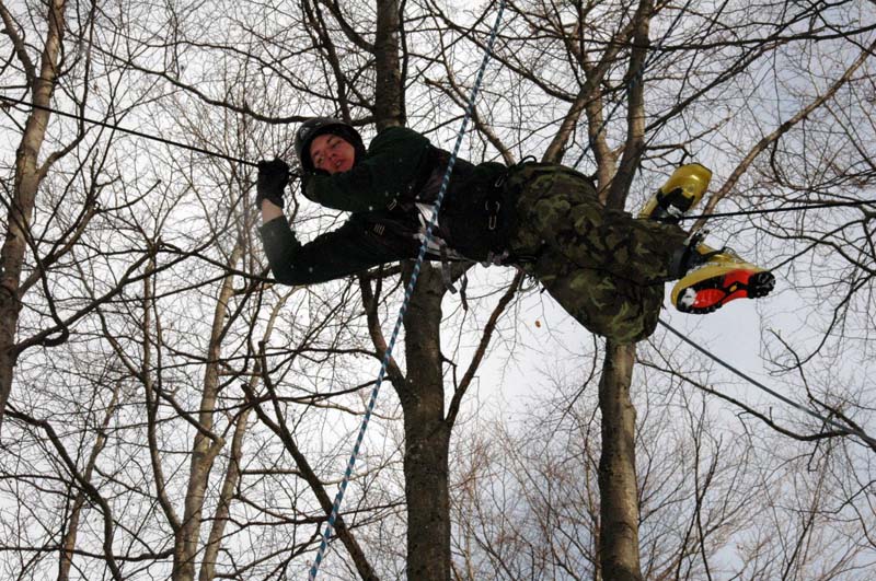 Nejtvrdší během úterý byla disciplína nazvaná „Sherwood“. Šlo o překonání překážek lanových drah. Dva členové hlídky se po zajištěné cestě vyšplhali do korun vysokých stromů a poté zdolávali prostory mezi dvěma stromy pomocí jednak dvou vodorovných lan natažených vedle sebe, dvou lan natažených nad sebou a také natažených vodorovných lanových žebříků. Třetí člen družstva zase překonával improvizovaný lanový žebřík vedoucí na vrchol skály, kde si přitáhl hrazdu - zavěšen na ni se zhoupl nad šikmou síť, ve vhodném okamžiku se pustil a dopadl do natažené sítě. Tento úkol se úspěšně zdařil jen asi polovině závodníků.
