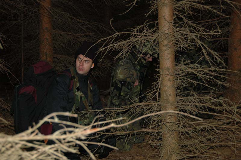 Uvědomil si, že díky dobré přípravě a slušné kondici pro něj uplynulé dny nebyly zas tak náročné: „Kdyby nebyla v noci taková zima, tak by to bylo v pohodě. Nenesl jsi ani zbraň, ani těžké náboje, přesouvali jsme se hodně pěšky, místy dost těžkým terénem – třeba dnes ráno jsi zapadl do jakési bažiny, jak jsi se snažil krýt v prostoru při nástřelu – ale zvládl jsi to.“ Přestřelek teď zažil víc než dost a aby byl nácvik co nejúčinnější, měl na sobě, stejně jako ostatní, simulátor zásahu, popruhy přes hrudník s detektory, zvaný Miles, který zapíská, když jej střela zasáhne. Ten jeho za celou dobu nezapískal, přece jen byl „VIP chráněnou osobou“ a kromě toho, že dostal instrukce, jak se chovat v případě nebezpečí – zalehnout a nehýbat se – tak mu pro začátek velitel čety přidělil "bodyguarda".