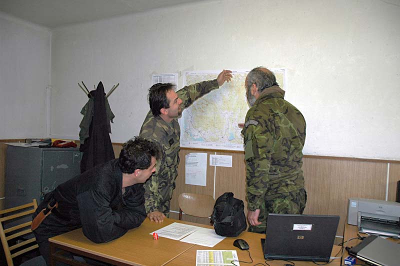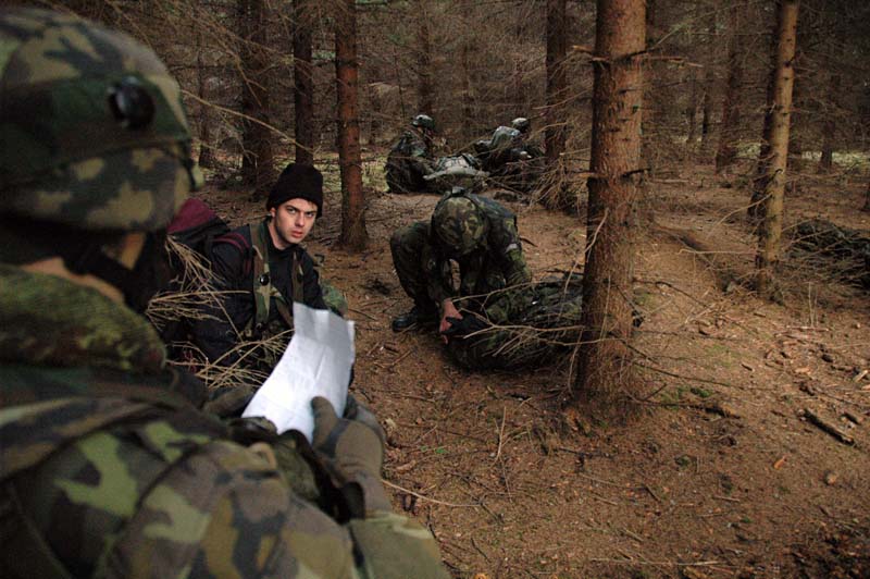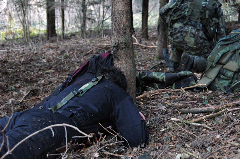 Před pár okamžiky byl ještě členem skupiny třinácti dalších mužů, plnil své úkoly v četě. Hlavou mu probíhají vzpomínky na události posledních dvou dní a dvou nocí, které strávil v lese: „Na dnešek jsi spal snad hodinu do půlnoci, pak nám agent předal zprávu, že se musíme přesunout o další tři kilometry, a na spánek tak zbyly sotva dvě hodiny.“ Zároveň s tím si vybavil, jak se na včerejšek také on zúčastnil setkání s agentem: „S Klárou, přístrojem na noční vidění, se naše čtyřčlenná skupinka přesunula asi půl kilometru lesem, dohodnuté místo setkání zajišťovali dva chlapi, třetí ověřoval agenta. Pak jsme převzali bojový rozkaz na další den a vrátili se zase zpět. Přes Kláru se vidí zeleně a na deset dvacet metrů se dá dost dobře orientovat v prostoru.“