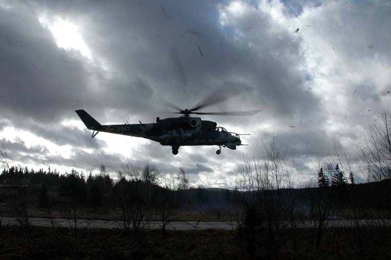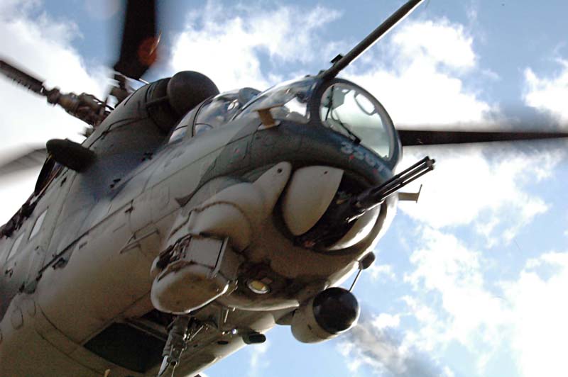 Vrtule stroje Mi-24 zvedá do vzduchu v divokém víru trsy trávy, úlomky křovin a spršku hlíny, z otevřených dvířek vyskakuje zablácený mladík v černé kombinéze a černé kukle, vytahuje si velký a zjevně těžký batoh a v nepohodlné pokrčené poloze odbíhá z dosahu prudce se točících listů rotoru.