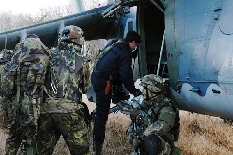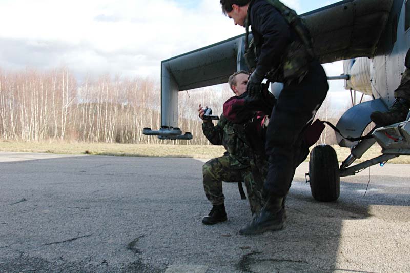 Z rychle se zavíraných dvířek mu pokyne ruka v maskáčích, blýsknou se zuby v úsměvu zamaskované tváře a najednou se vrtulník zvedne a během okamžiku je pryč. Mladý muž má ještě zvednutou ruku v pozdravu, chvilku stojí trošku rozpačitě na okraji přistávací plochy tvořené položenými panely a rozhlíží se, kudy se vydá.