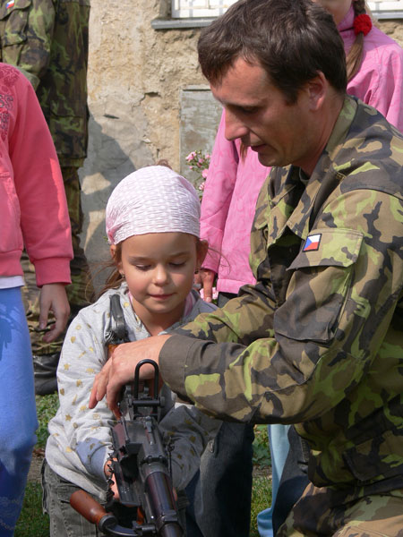 V další části se pak seznámily s různými druhy zbraní, které měly možnost si nejen zblízka prohlédnout, ale také je rozložit a zase složit zpět. Dalším lákadlem byl padák a povídání o výcviku výsadkářů.