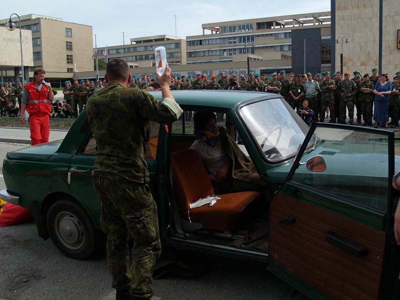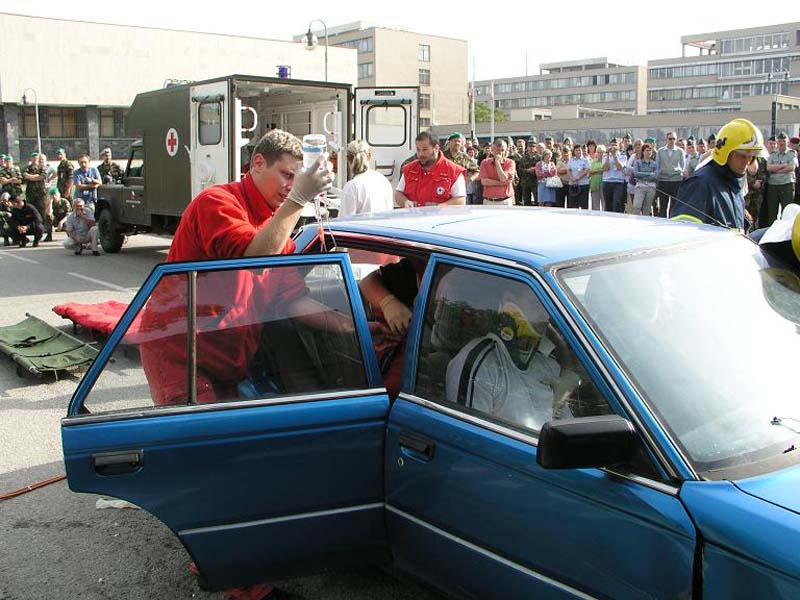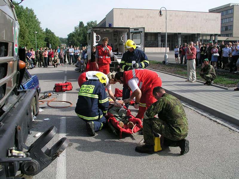 Na začátku byla zinscenována těžká dopravní nehoda - srážka nákladního vozidla s osobním automobilem - při které cestující utrpěli těžká i lehčí zranění. Poté v reálných časových odstupech následovala ukázka průběhu likvidace následků nehody, které se účastnily všechny složky Integrovaného záchranného systému (Rychlá záchranná služba, Hasičská zásahová jednotka a Dopravní služba policie ČR). Jednotlivé části ukázky doprovázel zasvěcený komentář objasňující detaily předváděné činnosti.