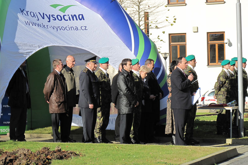 Ředitel Krajského vojenského velitelství Jihlava plukovník gšt. Milan Solík při této příležitosti přivítal hosty, mezi nimiž byli také náměstek hejtmana kraje Vysočina Vladimír Novotný, ředitel krajského úřadu Zdeněk Kadlec, předseda Sdružení válečných veteránů kraje Vysočina Jan Frenc a další hosté.