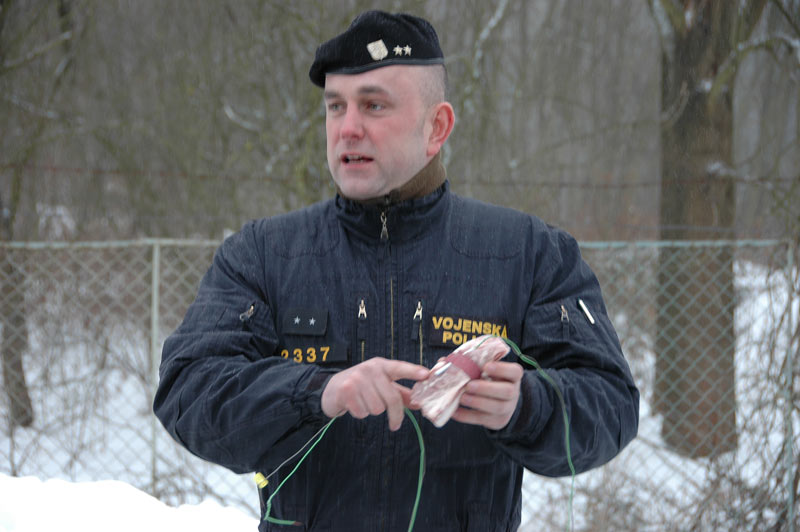 „Toto školení připravujeme pro kolegy z Pardubic proto, abychom se s nimi podělili o nejnovější poznatky z naší oblasti. Dozvědí se zde samozřejmě pouze o základech pyrotechnické práce. V obecné rovině řečeno, jde o základní informace o munici, se kterou se při své práci mohou setkat a nástražných výbušných systémech. Našim úkolem je jim připomenout jejich činnost do doby, než se na místo činu dostaví odborník - tedy pyrotechnik. Jde o to, aby se lidé, kteří pracují v týmu, uměli vžít do role toho druhého už při zajišťování stop, které mohou vést k odhalení pachatele. Účastníci dnešního školení, které je rozděleno na teoretickou a praktickou část, jsou budoucí kriminalističtí technici a vyšetřovatelé,“ prozradil smysl školení praporčík Wodecki.