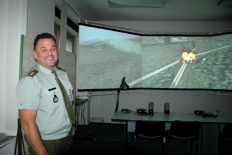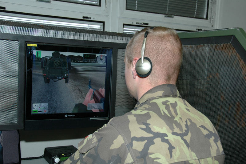 - Virtuální simulace už modeluje nejen účinky munice, ale také prostředí, zbraně a techniku. Osádkám a jednotlivcům okolní dění zprostředkovávají třídimenzionální zobrazovače a na vzniklou situaci reagují prostřednictvím realitě věrných nebo zjednodušených ovládacích prvků simulátoru.