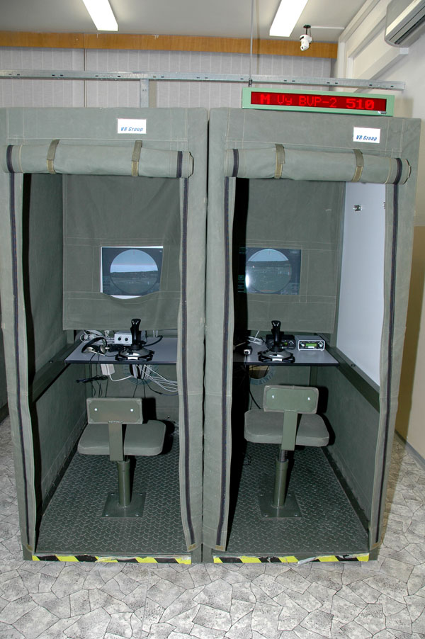 - Jednotka, která přijede do Vyškova, má možnost cvičit na dvou druzích virtuálních simulátorů. Ten první má označení VS I (virtuální simulátor typu 1), který je věrnou kopií buď bojového vozidla pěchoty – BVP 2 nebo tanku T72 M4 CZ. Vnitřní uspořádání trenažérů obou typů bojových prostředků je, co se týká ovládacích prvků, do detailu totožné se skutečnými prostředky používanými v AČR. To je předurčuje k provádění výcviku nejen v taktice, ve velení a řízení, ale také k nácviku ovládání prvků daného bojového prostředku při střelecké a řidičské přípravě. Díky tomu pak může probíhat výcvik řidičů, střelců, velitelů a rojů v prostředí virtuální reality. Vojáci si zažijí ovládaní prvků vozidel, sledování technických charakteristik motorů, řešení technických závad. Mohou si natrénovat zdolávání terénních překážek, komunikaci v rámci osádky, ale i nácvik střeleb a řešení taktických situací.