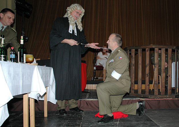 Tady přesně v sedmnáct hodin zasedl dělostřelecký soud, který v rámci humorně ztvárněného soudního přelíčení zvažoval přijetí či nepřijetí nových dělostřeleckých čekatelů do cechu kanonýrů 13. dělostřelecké brigády. Na regulérní průběh soudního procesu dohlížela sama Svatá Barbora, v osobě herečky, moderátorky a zpěvačky Báry Štěpánové.