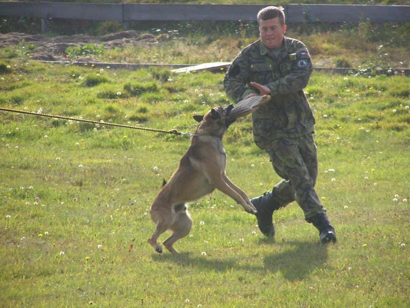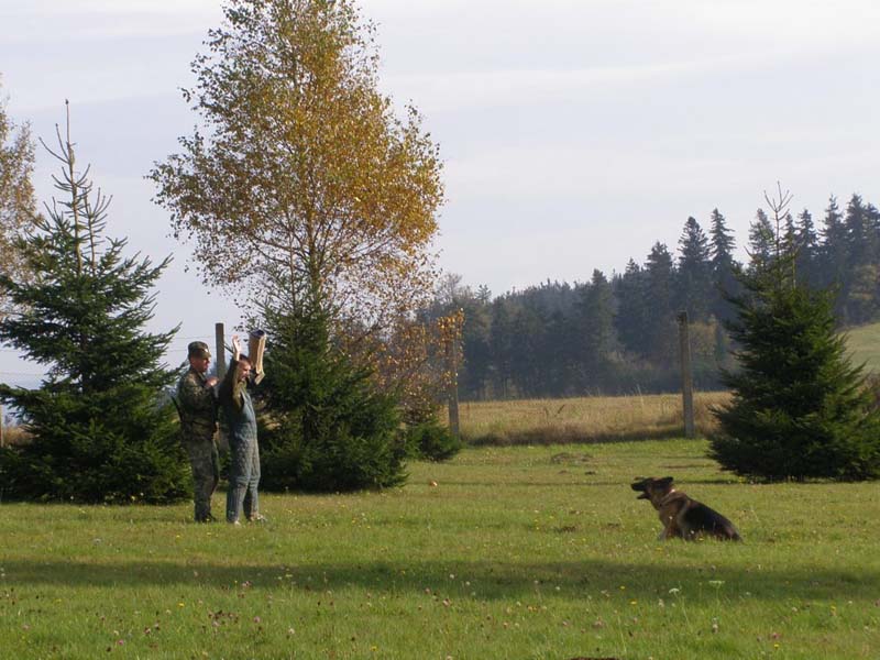 Tím však celá činnost nekončila a pes musel se svým psovodem dokázat uhlídat narušitele při osobní prohlídce prováděné psovodem a eskortovat ho posléze na určené místo.