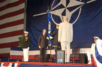 Slavnostní ceremoniál u příležitosti předání velení se uskutečnil ve středu 9. září 2009 v Norfolku na palubě letadlové lodi amerického vojenského námořnictva USS Dwight D. Eisenhower (CVN-69).