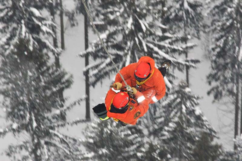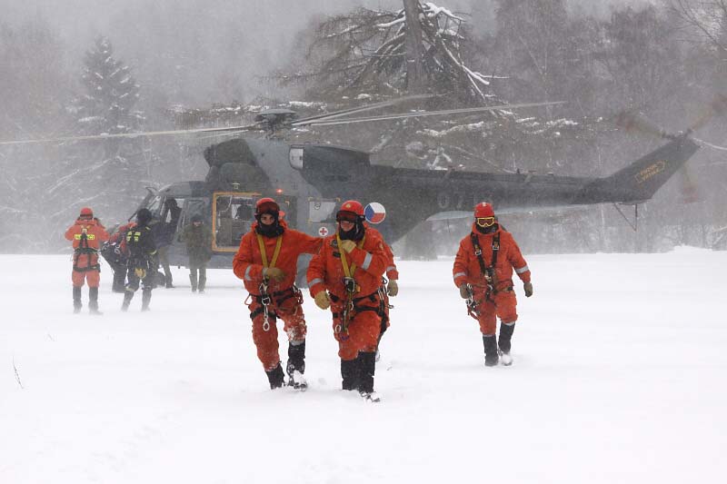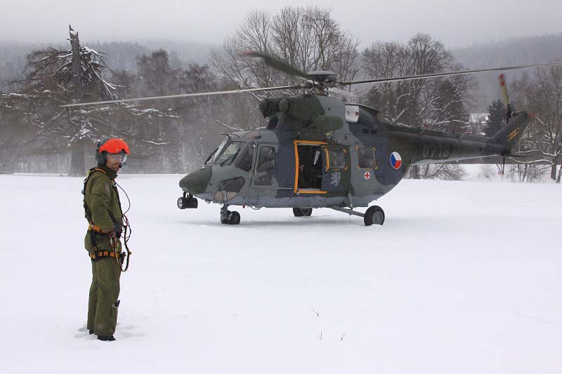 V posledním lednovém týdnu se v okolí Železné Rudy uskutečnilo součinnostní cvičení příslušníků kbelské 243. vrtulníkové letky se specialisty Hasičského záchranného sboru a Horské služby Šumava.