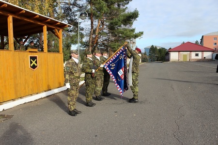 Praporu pěší roty aktivních záloh KVV Praha požehnal vojenský kaplan Petr Fiala