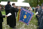 Bojový prapor strakonického oddílu ozdobila čestná stuha Církve československé husitské