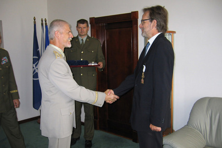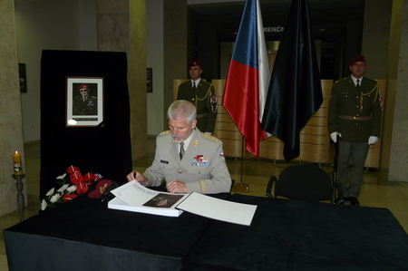 Představitelé velení armády a vojáci vzdávají poctu generálu Tomáši Sedláčkovi