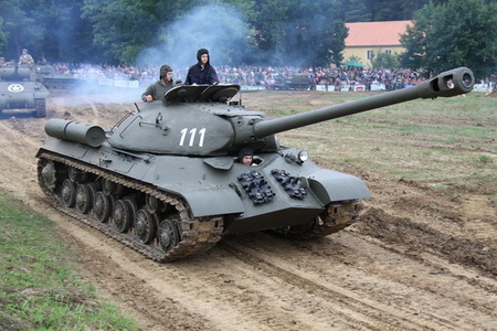 Tankovou bitvu před zaplněnými tribunami umocnila efektní pyrotechnika