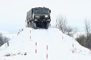 Jako na horské dráze. Armádní řidiči trénovali s tatrovkami i 30° náklon