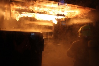 Vojenští hasiči cvičili v ohňovém trenažéru Fire Dragon 9000. Jako první v Česku.
