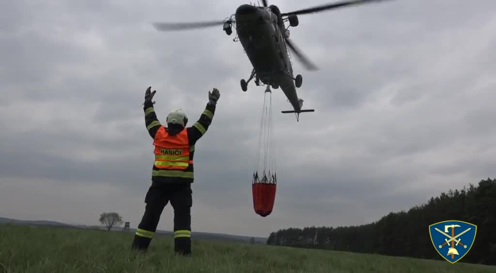 Devadesát vojenských hasičů trénovalo na základně v Bechyni hašení požárů s Bambi vakem