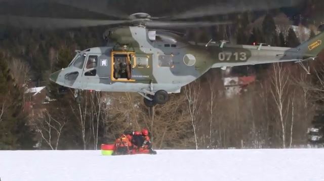 Letečtí záchranáři a hasiči zachraňovali zraněné na Špičáku. Naštěstí jen cvičně
