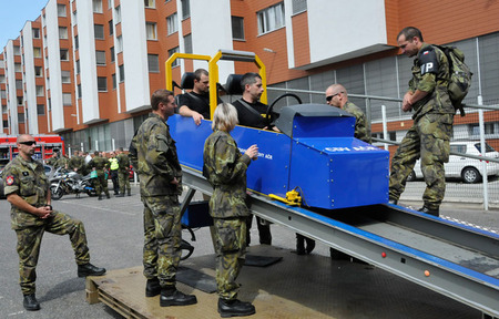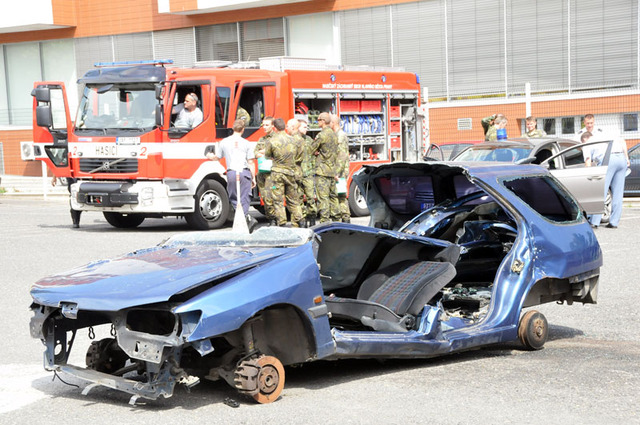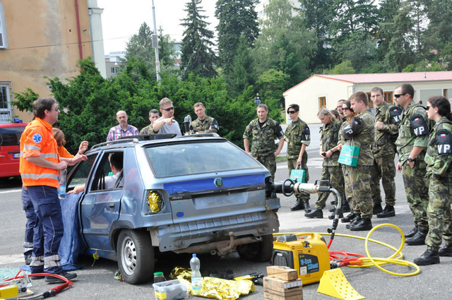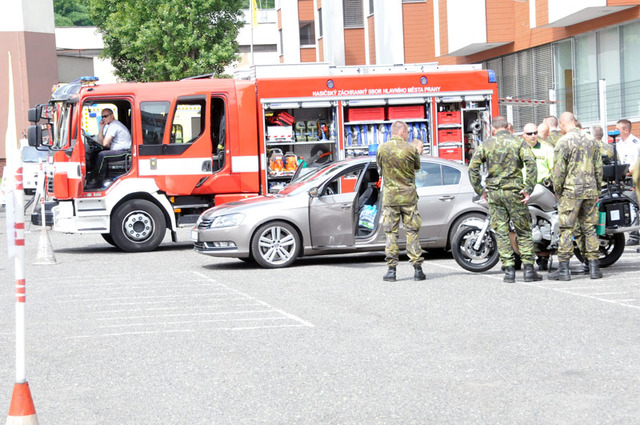 Hasiči ze záchranného sboru hlavního města Prahy předváděli praktické ukázky vyprošťování osob z havarovaného vozidla