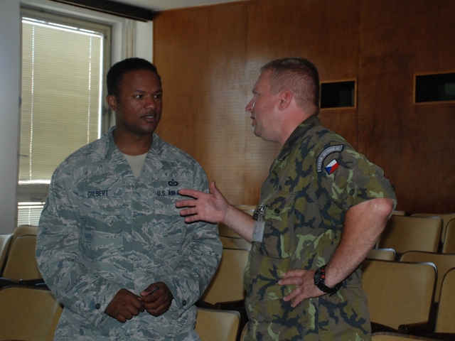 Řídící cvičení plukovník Svoboda při jednání s příslušníkem USA SSgt Gilbertem