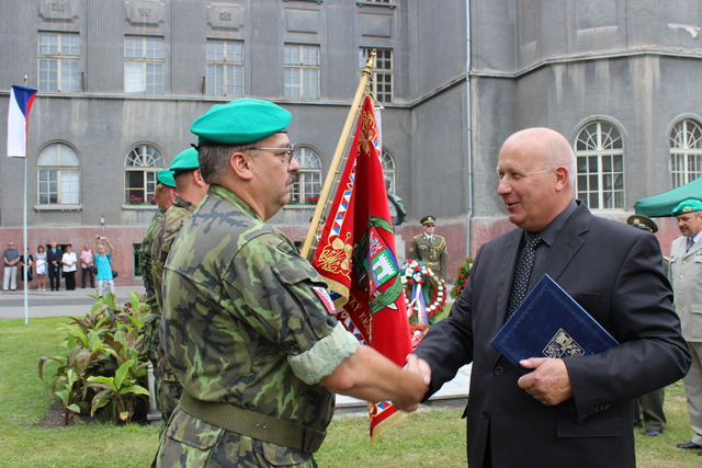 Zleva VR AZ kpt. Jindřich Černý a hejtman ÚK Oldřich Bubeníček. Předání dekretu s čestným názvem generálmajora in memoriam Antonína Sochora