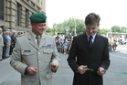 Přestřižení pásky provedl generálmajor Žižka spolu s autorem výstavy Tomášem Kykalem