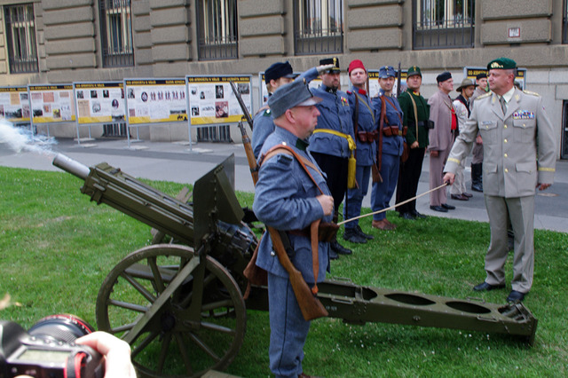 Zahájení výstavy provázel symbolický výstřel z dobového doprovodného kanónu Škoda