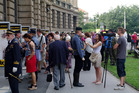 Zájem o vernisáž výstavy Od atentátu k válce byl před budovou Generálního štábu značný