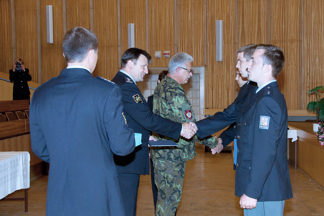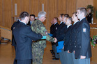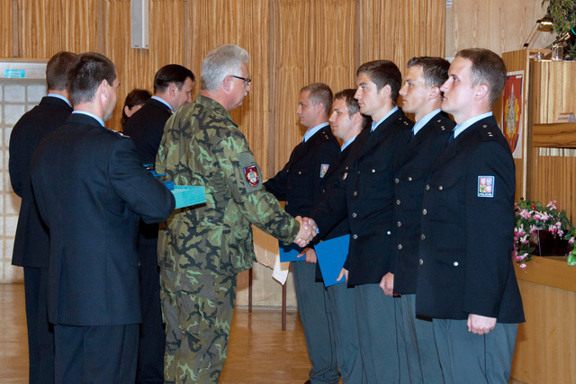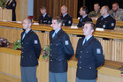 Tři absolventi - policisté- byli odměněni za nejlepší výsledky v pořadové, tělesné a střelecké přípravě