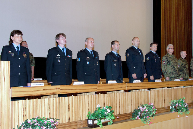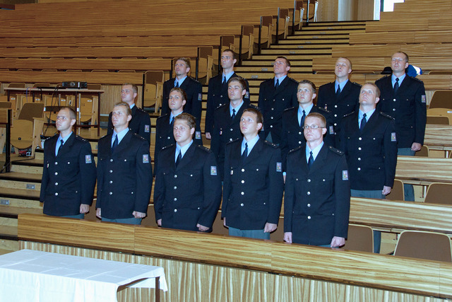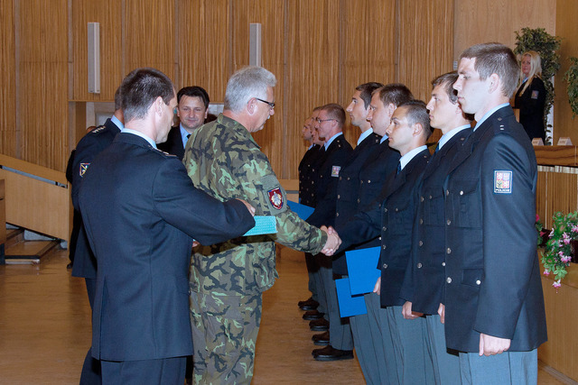 Na absolventech nástupního kurzu PČR bylo patrné náležité pořadové vystupování, které dodalo na unikátnosti celého vyřazení po vojenském vzoru