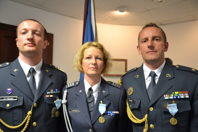 Ocenění účastníci zahraniční mise: kapitán Jiří Křemen, nadpraporčice Dita Machovcová a major Martin Tesař (zleva)