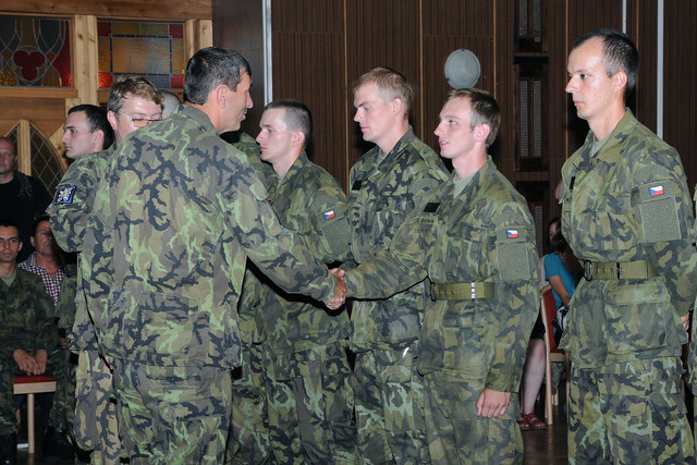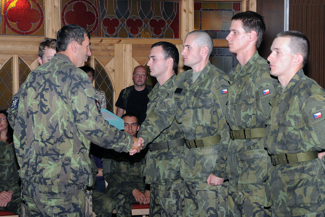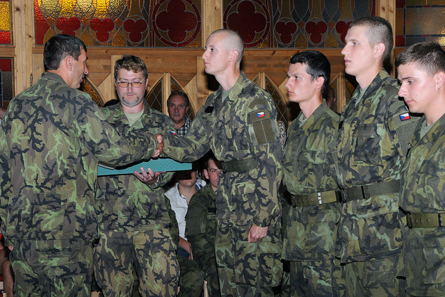 voj.Michael Pavelka přebírá certifikát o úspěšném absolvování kurzu základní přípravy - AZ