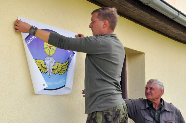 ..ještě vyvěsit logo jindřichohradeckého klubu výsadkových veteránů, aby bylo vidět, kdo se pod stavbou tábora pro účastníky setkání podepsal