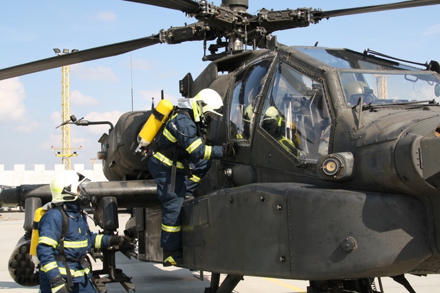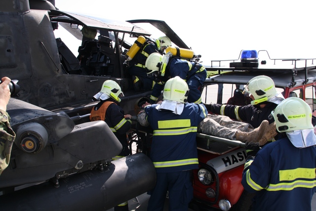 Ample Strike 2014: Hasiči zachraňují posádku vrtulníku AH-64