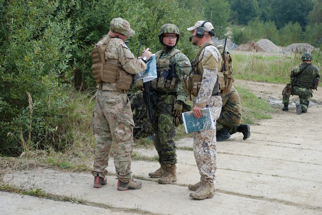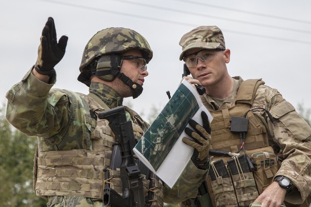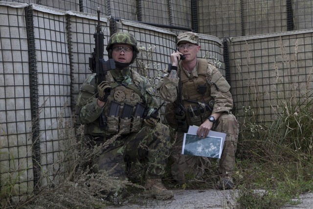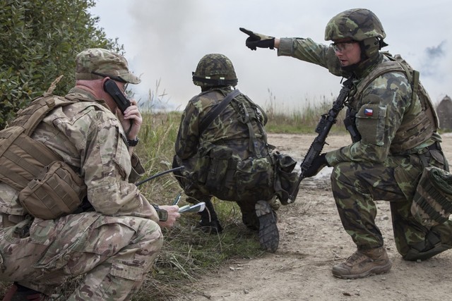 Velitel jednotky upřesňuje návodčímu místo pro blízkou leteckou podporu