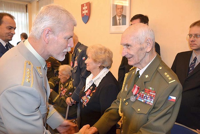 Generál Pavel gratuluje válečnému veteránovi k ocenění