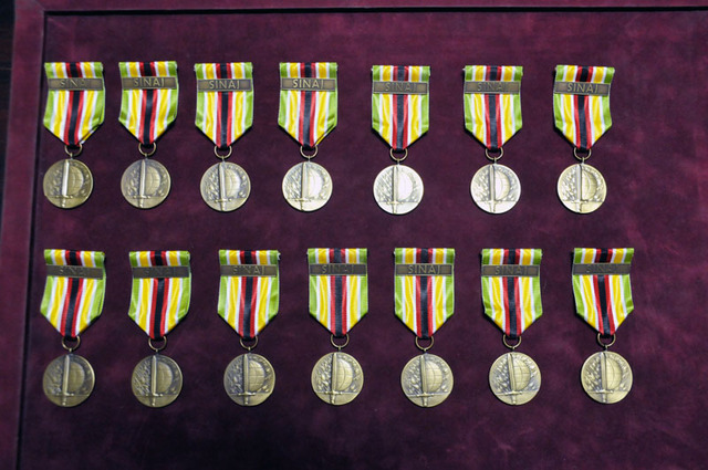Medaile ministra obrany ČR Za službu v zahraničí - Sinaj, které obdrželi všichni vojáci, kteří se vrátili ze své půlroční mise v Africe