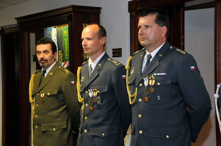 Vyznamenáni byli (zleva) podplukovníci Zoltán Zöld, Radim Ulrich a kpt.Tomáš Mezera