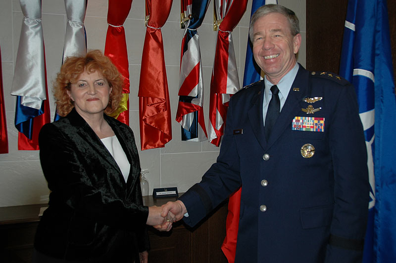 Ministryně obrany Vlasta Parkanová přijala ve čtvrtek 17. ledna 2008 ředitele Agentury pro protiraketovou obranu USA generálporučíka Henryho Oberinga.